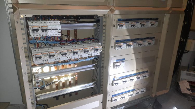 Dans cet appartement ancien, l’installation électrique ne répondait plus aux exigences de sécurité actuelles. Nous avons procédé à une remise aux normes complète : remplacement du tableau électrique, mise à la terre, création de nouveaux circuits pour la cuisine et la salle de bain, installation de prises et d’interrupteurs modernes.
